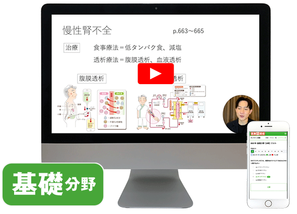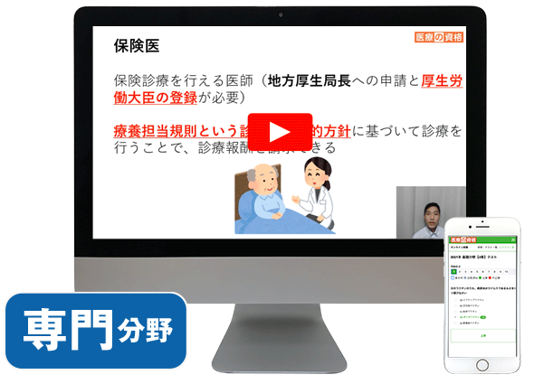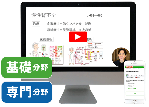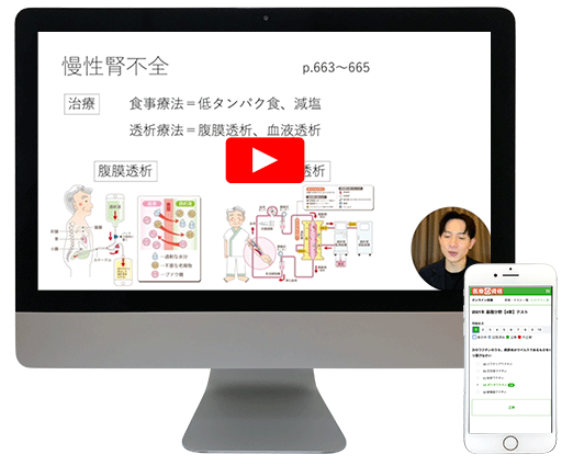 東京大学医学部卒の大人気講師によるオンライン授業と、模擬試験・学習教材の決定版『医療の資格』の分析に完全準拠した「試験に出る」テストで、最短距離での試験対策に取り組めます。